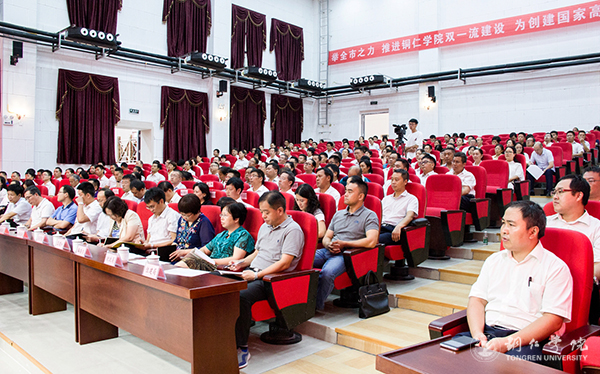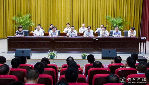 9月10日下午,beat365在梵净山人文生态馆召开“双一流”创建动员大会。铜仁市委书记陈昌旭,市人大常委会主任陈达新,市政协主席陈康,市委副书记、市委政法委书记张涛,市委常委、市委组织部部长陈代军,市委常委、市委宣传部部长夏虹,副市长刘岚,市政协副主席杨晓敏出席;市直部门领导,各高校、相关区县负责人以及beat365党委书记李树新,校长侯长林,党委副书记饶小华,副校长代亮、罗红芳,全校副处级以上干部、具有教授职称和博士学位教师、一流学科带头人参加大会。大会由张涛主持。