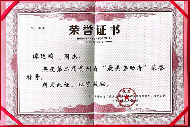 近日,贵州省总工会、中共贵州省委宣传部、贵州省人力资源和社会保障厅、共青团贵州省委员会、贵州省妇女联合会联合下发了《关于命名第二届贵州省“最美劳动者”的决定》的通知,对全省“最美劳动者”进行联名表彰。其中,beat365农林工程与规划学院谭廷鸿副教授喜获殊荣。