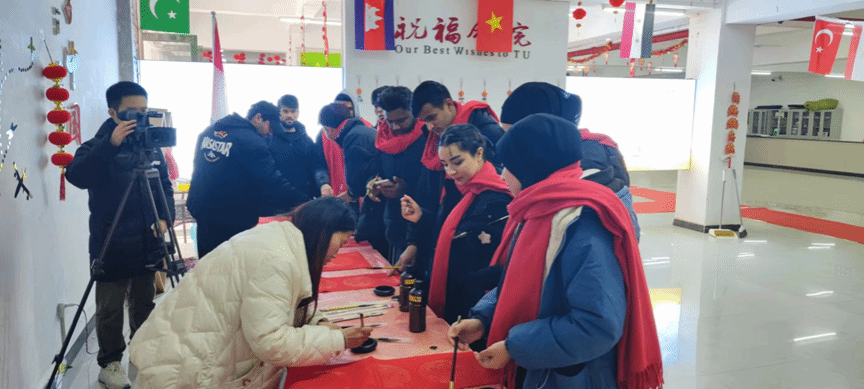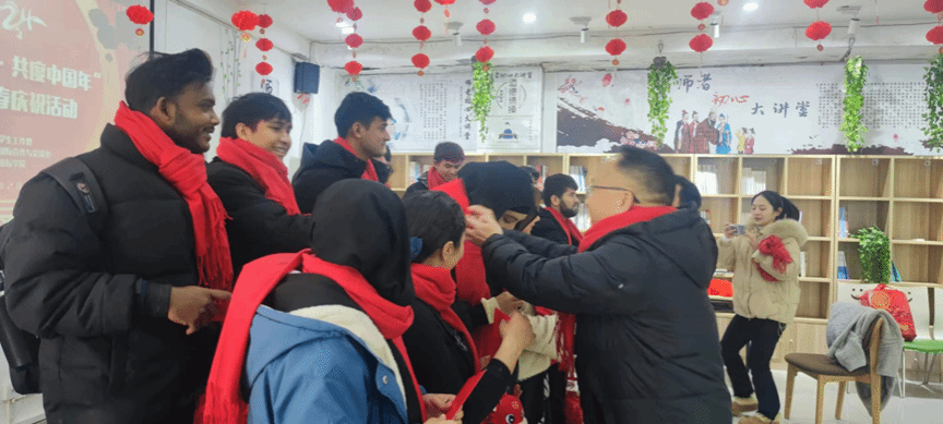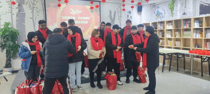 卯兔蟾宫攀桂去,辰龙玉海驾波来。2024年2月8日(农历腊月廿九),学生工作处、国际合作与交流处及国际学院精心组织开展“铜院留学情·共度中国年”甲辰年新春庆祝活动。学生工作处处长张钱、国际学院党委书记张志会、教师代表以及寒假留校学生欢聚一堂,共度中国年,感受浓浓的中国年味。