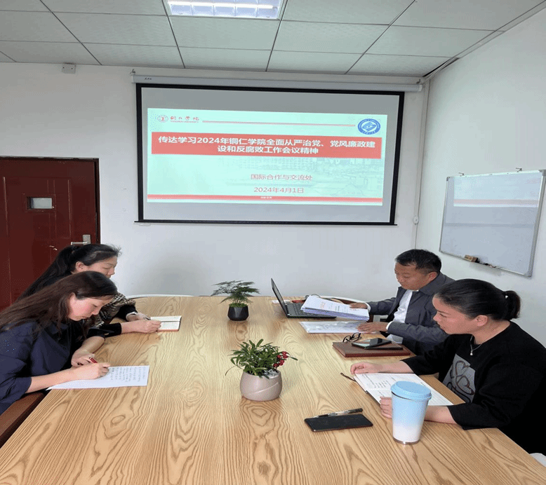 4月1日,国际合作与交流处全体成员在8102会议室召开会议,传达学习2024年beat365英国官方网站全面从严治党、党风廉政建设和反腐败工作会议精神,本次会议李念主持,处室全体人员参加。