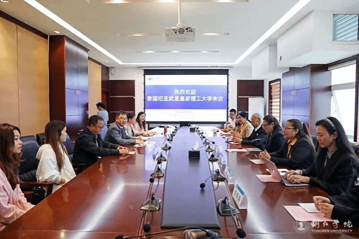 唐磊首先代表学校向远道而来的泰国客人表示欢迎。随后,双方各自介绍了本校的基本情况和发展现状。在讨论环节,双方就师生互派、学术合作等议题进行了深入交流。双方均表示,通过师生互派可以增进两校之间的文化交流与理解,同时也有助于提高双方的教学水平和科研能力。