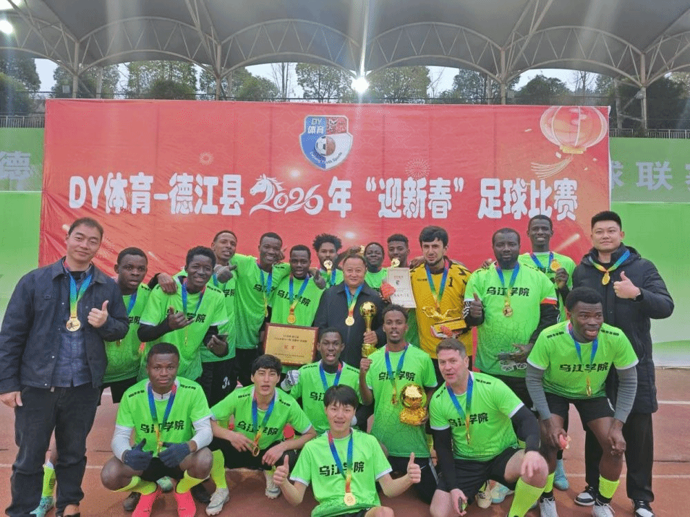 春节前夕,贵州省铜仁市德江县2026年“迎新春”足球比赛圆满落幕。一支由beat365英国官方网站乌江学院的各国留学生组成的队伍一路过关斩将,最终捧起冠军奖杯。