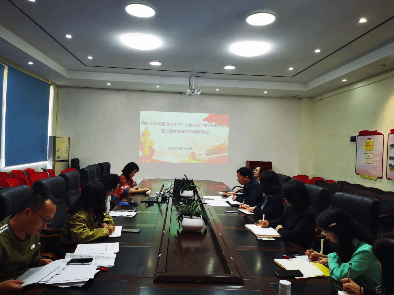 10月16日上午,国际学院在明理楼A三楼会议室召开党委理论学习中心组2023年第9次集中学习暨学习贯彻习近平新时代中国特色社会主义思想主题教育第2次专题研讨会。会议由院党委书记张志会主持,院党委理论学习中心组成员、副处级干部、科级干部、各党支部书记、团总支书记参会。