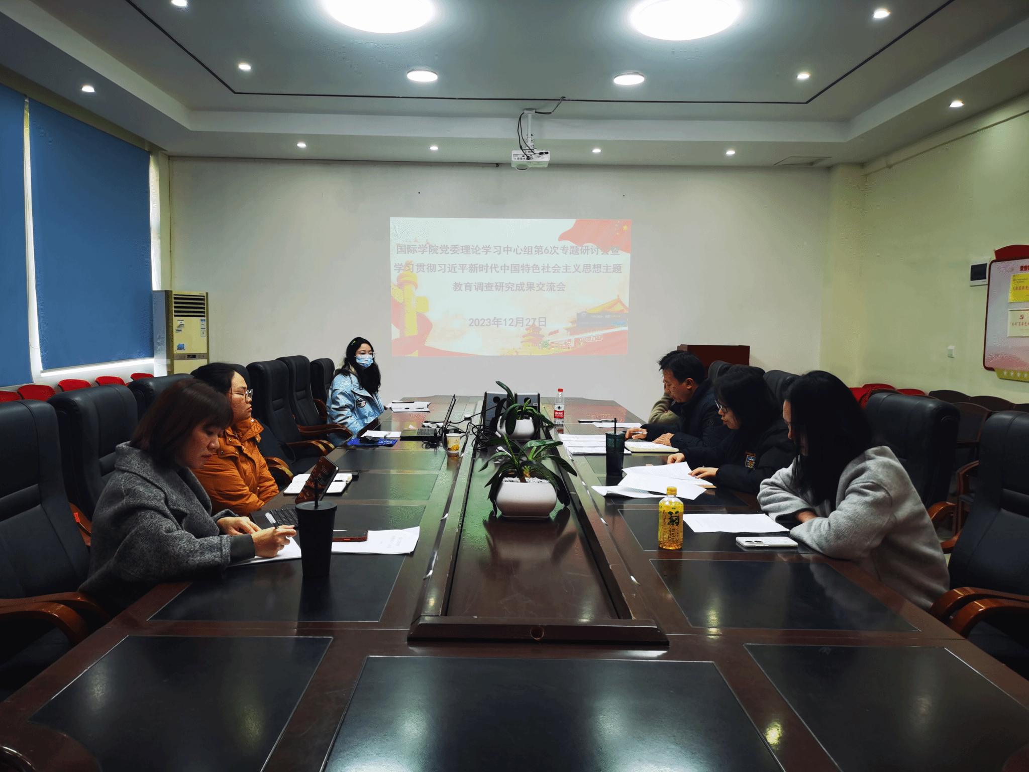 12月27日下午,国际学院在明理楼A三楼会议室召开党委理论学习中心组2023年第13次集中学习和主题教育第6次专题研讨暨调研成果交流会。会议由院党委书记张志会主持,院党委班子成员、非党员副处级干部、各党支部书记、系部、科室负责人参加学习研讨。