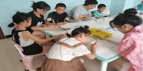 (志愿者辅导小朋友课程知识)