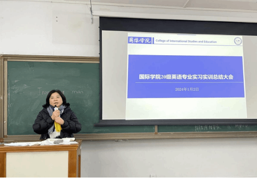 为更好地了解实习工作并有针对性地对其加以完善,国际学院于2024年1月2日在明理楼A401召开了2020级英语专业实习总结大会。出席本次会议的有国际学院副院长杨芹、英语专业教研室主任汪萍、20级英语专业班主任饶华宏以及此次实习带队老师高琼芳。会议由2020级英语1班罗力主持,2020级全体实习生参与。