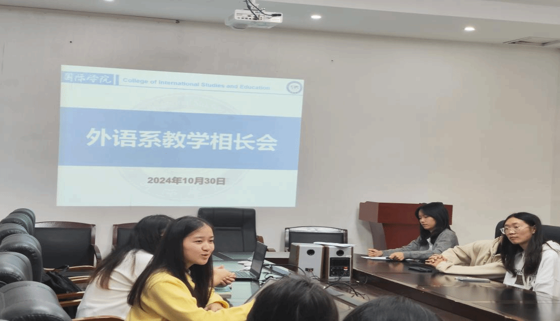 2024年10月30日,外语系教学相长会在明理A三楼会议室举行。国际学院外语系主任胡红渊、英语专业教研室主任汪萍、商务英语专业教研室主任孙用常三位老师参加了此次会议。会议旨在加强师生间的沟通交流,促进教学相长,进一步提升外语系的教学质量。