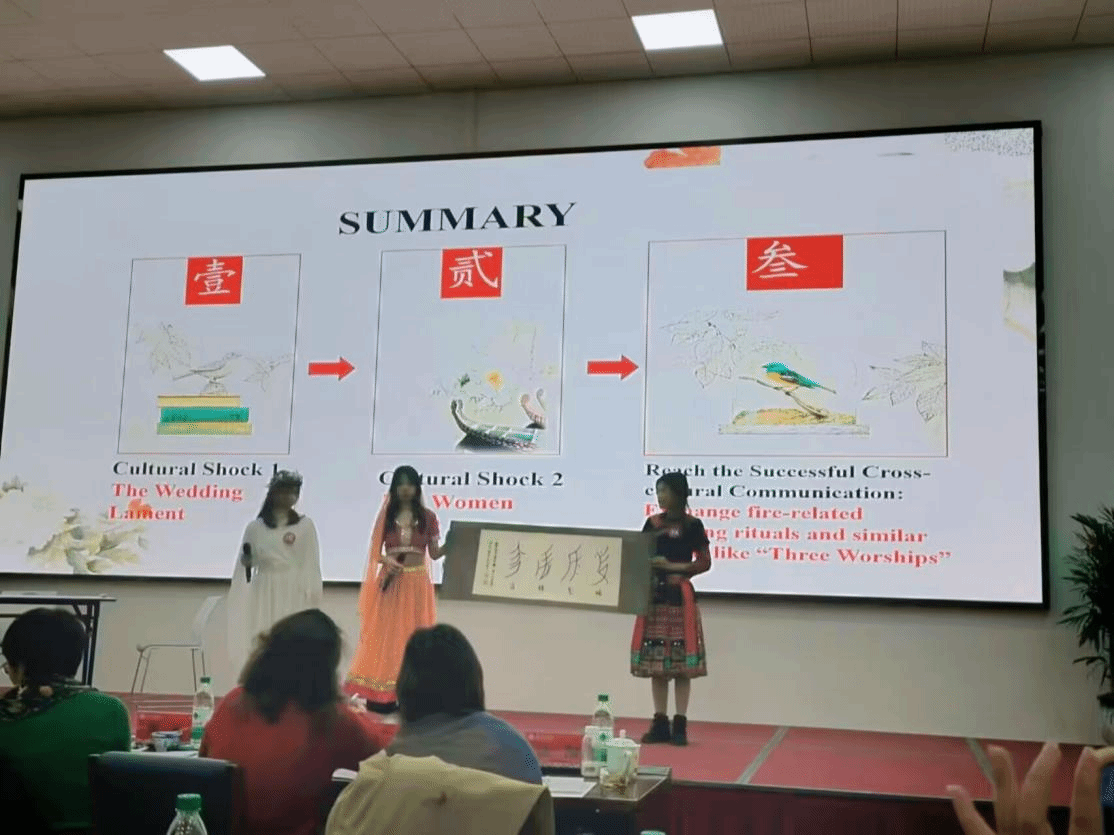 beat365英国官方网站代表队由胡红渊老师带队,国际学院22级商务英语专业刁银利、文化与传播学院23级汉语言文学专业余添添和24级汉语言文学专业刘紫婧同学代表beat365英国官方网站参加本次比赛。她们的参赛作品“Interesting wedding Custom”凭借有趣的内容、深刻的剖析、和流利的现场展现表现出了优秀的跨文化交际能力,赢得了评委和观众的好评。经过激烈的角逐,beat365代表队最终荣获二等奖,为学校赢得了荣誉。