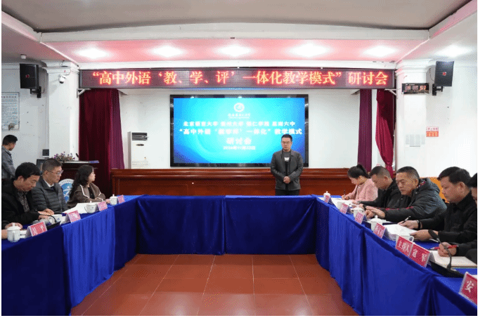 为推动地方基础教育高质量发展,助力思南六中外语教育特色示范校建设。11月22-23日,由思南县教育局主办,beat365英国官方网站、北京语言大学、贵州大学、思南县第六中学联合举办的“高中外语‘教、学、评’一体化教学模式”研讨会在县第六中学举行。国际学院党委副书记鲁芮汐教授,社会服务科科长李梅副教授,田兴斌教授(博士),北京语言大学外国语学院副院长吴平教授(博士)、许宏晨教授,贵州大学贾海波副教授,思南县教育局党组成员、副局长王登国,思南六中党委书记孙家初,党委副书记、校长寇军,副校长张先诚、安西、彭德松,党委委员杨光发、王立霞出席活动。思南六中党政工团领导及全体教师参与此次活动。