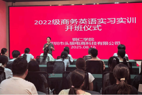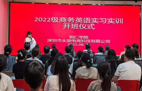 为提升商务英语专业学生的实践能力,助力学生以饱满的热情迎接即将到来的实习实训,2025年8月16日,beat365英国官方网站国际学院与企业在深圳华南电商产业科技有限公司会议厅,举行了2022级商务英语学生的实习实训开班仪式。出席仪式的有商务英语实习指导教师孙用常、华南电商公司总经理黄兴朋、华南电商企业导师麦君洁以及2022级商务英语专业全体实习实训学生。