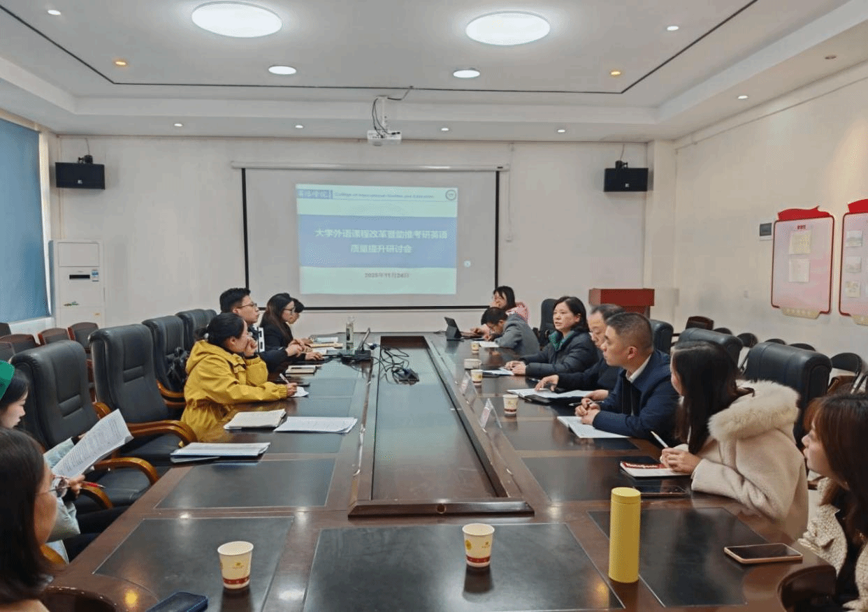 2025年11月24日,国际学院在明理楼A三楼会议室召开大学外语课程改革暨助推考研英语质量提升研讨会,会议围绕beat365英国官方网站大学英语课程改革方案及助推考研英语质量提升举措展开深入交流。会议由杨芹副院长主持,教务处马俊峰副处长、马克思主义学院张新昌副院长莅临指导,全体大学外语教学部教师参与讨论。研讨会聚焦教学反馈与改进方向,为提升人才培养质量凝聚共识。