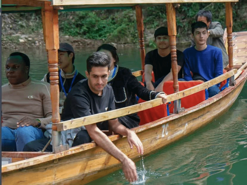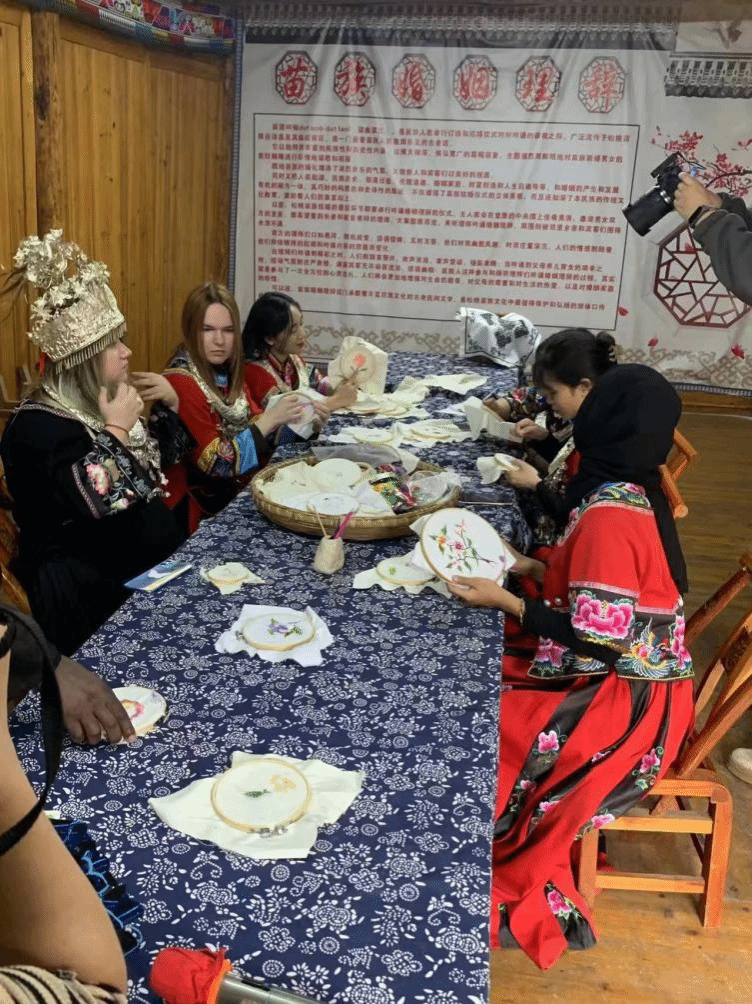 此外,留学生们还有幸观看了由当地艺术家带来的精彩表演。从高亢嘹亮的山歌到技艺精湛的手工艺展示,每一项内容都让这些年轻的心灵深受震撼。通过这样近距离接触中华优秀传统文化的机会,不仅加深了他们对中国这个东方文明古国的认识与理解,更促进了中外青年之间的友谊桥梁建设。