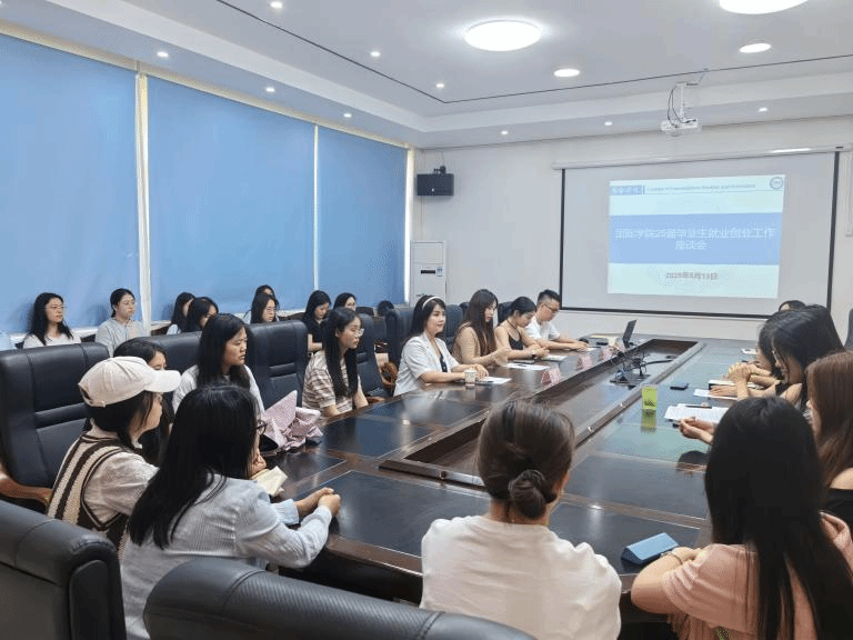 为进一步推进毕业生就业创业工作,加强学院与企业之间的交流合作,5月13日,国际学院于三楼会议室召开了就业创业工作座谈会。学院领导班子成员、学生科、25届毕业班班主任、25届毕业生代表、铜仁市碧江区斯柏瑞培训学校一行4人参与本次座谈会。