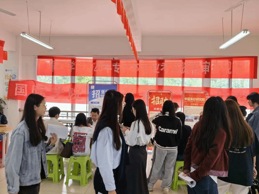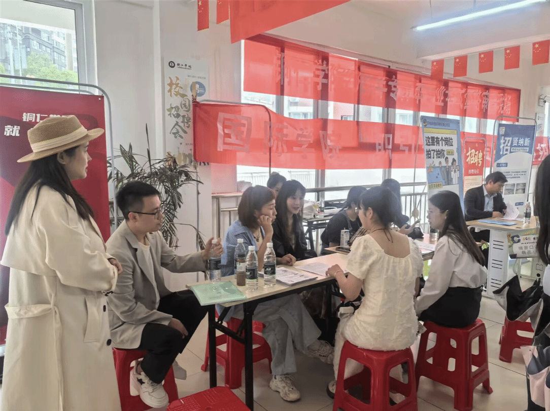 为助力毕业生高质量就业,拓宽就业渠道,5月8日,国际学院校园招聘会在孵化基地二楼大厅举行。本次招聘会邀请了5家企业参与,涵盖了教育、电商、艺术设计等多个领域,为25届毕业生提供了丰富多样的就业岗位。