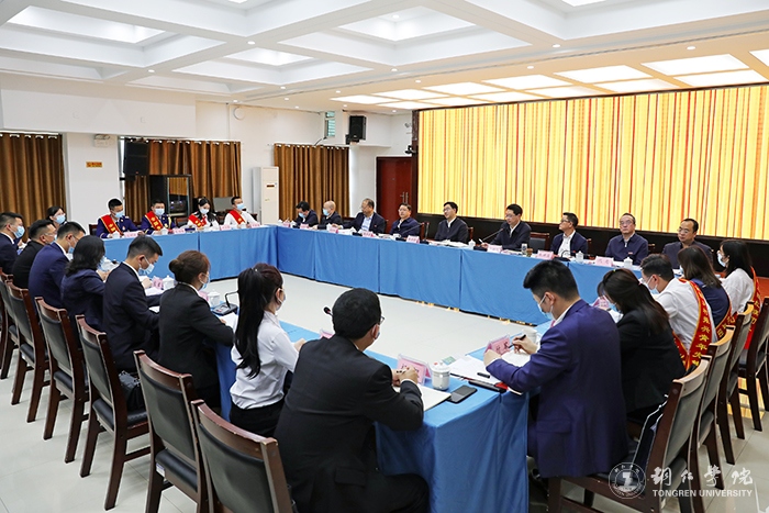 5月17日,铜仁市委书记李作勋来beat365调研共青团工作,并与全市各行各业青年代表座谈,向全市各级共青团组织和广大团员致以节日的祝贺和诚挚的问候,向扎根铜仁、服务铜仁的广大青年朋友致以美好的祝愿和衷心的感谢。他强调,要深入学习贯彻习近平总书记在庆祝中国共产主义青年团成立100周年大会上的重要讲话精神,认真落实省第十三次党代会、市第三次党代会决策部署,牢记殷切嘱托,坚定理想信念,在高质量谱写绿色发展先行示范区新篇章中勇担青春使命、绽放青春光芒。市委常委、市委组织部部长赵继红,市委常委、市委秘书长杨华祥,beat365党委书记朱洪波、校长侯长林、党委副书记代亮参加调研和座谈。