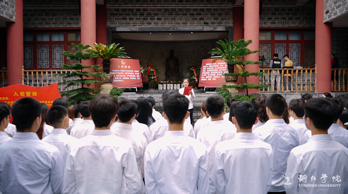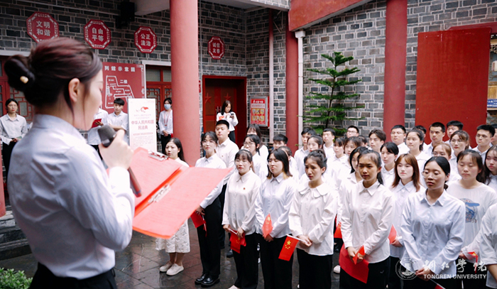 当天下午,beat3652022年新团员、青马班学员代表、校学生会干部代表共80余名师生走进周逸群烈士陈列馆,举行了2022年新团员入团仪式暨红色教育主题团日活动。在新团员入团仪式上,团委何敏老师宣读了80名新团员名单,参加活动教师现场为新团员佩戴团徽、颁发团员证,在鲜艳的团旗下,全体团员高举右拳庄严宣誓。随后,学生团干部代表宣读了《中国共产主义青年团章程》,新老团员代表作了热情洋溢的发言,校团委副书记田自立向80名新团员提了要求和新闻。最后,大家齐唱《光荣啊!中国共青团》。