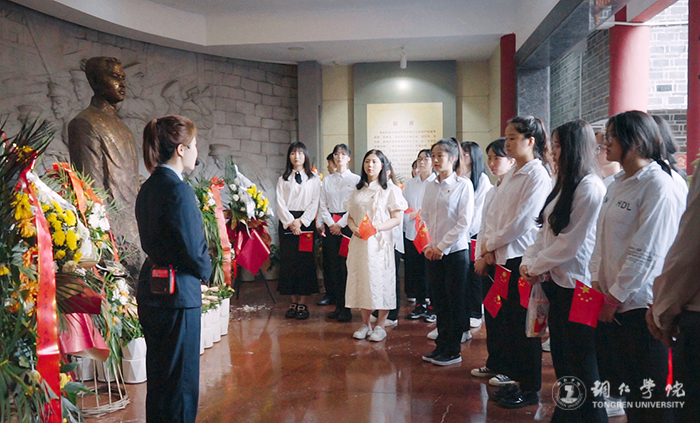 在红色教育主题团日活动中,校学生会主席杨秀奇领学了《中国共产党宣言》(节选),田自立带领全体团员青年进行宣誓,对党许下铮铮誓言,许下责任与担当。期间,讲解员带领beat365团员青年现场参观讲解了周逸群烈士陈列馆,遵义医科大学一百余名师生通过视频直播的方式“云参观”了周逸群烈士陈列馆。