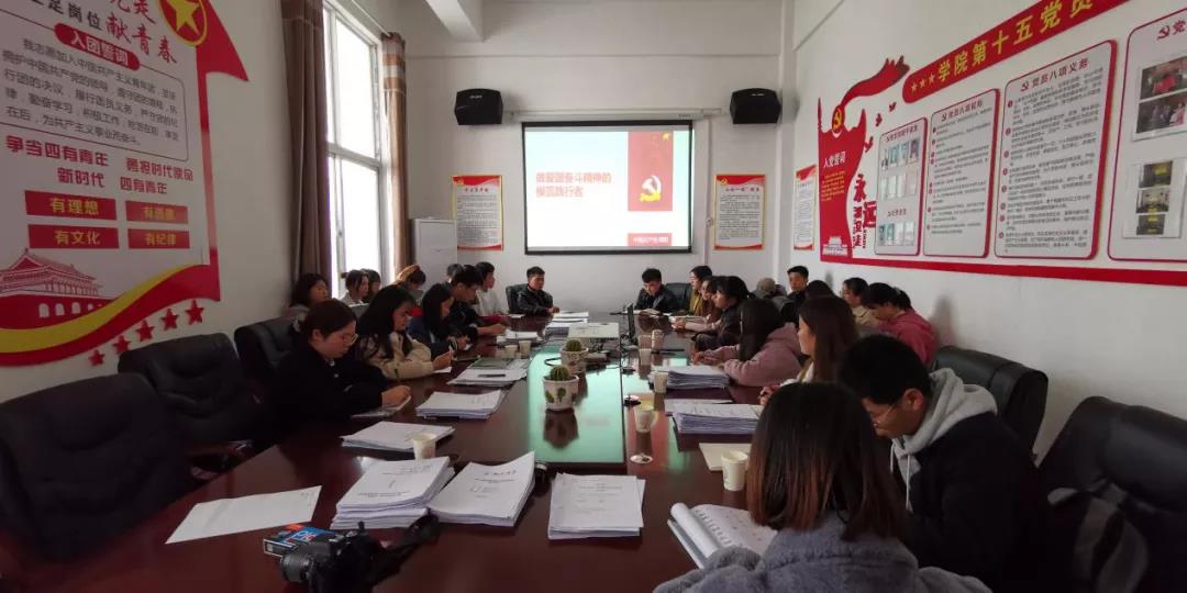 2021年4月15日星期四13时,beat365英国官方网站第六期青马班学员在校团委会议室开展理论课学习。校团委周倩老师以“做一名爱国奋斗精神的模范践行者”为主题进行专题授课。