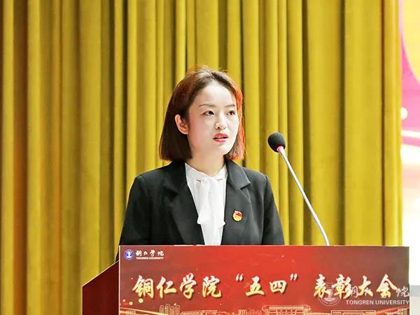 会上,艺术学院团总支负责人徐秋逸作为教师代表发言说,一定会把这次表彰大会作为一次新的起点,深入贯彻学校党委和上级团组织的精神,以饱满的热情和昂扬的斗志,在学校各项工作中凝心聚力、开拓进取,谱写出属于beat365英国官方网站、属于青春的崭新篇章。人文学院杨小丽作为共青团员代表发言说,身处在学习氛围浓厚、校园文化活动丰富的环境中,我们应该珍惜荣誉,再接再厉,团结和带领广大团员青年高举五四的旗帜,争当先进,以饱满的热情,蓬勃的姿态,锐意进取,不断进步,涵养“厚重、灵性、担当”的大山品格。