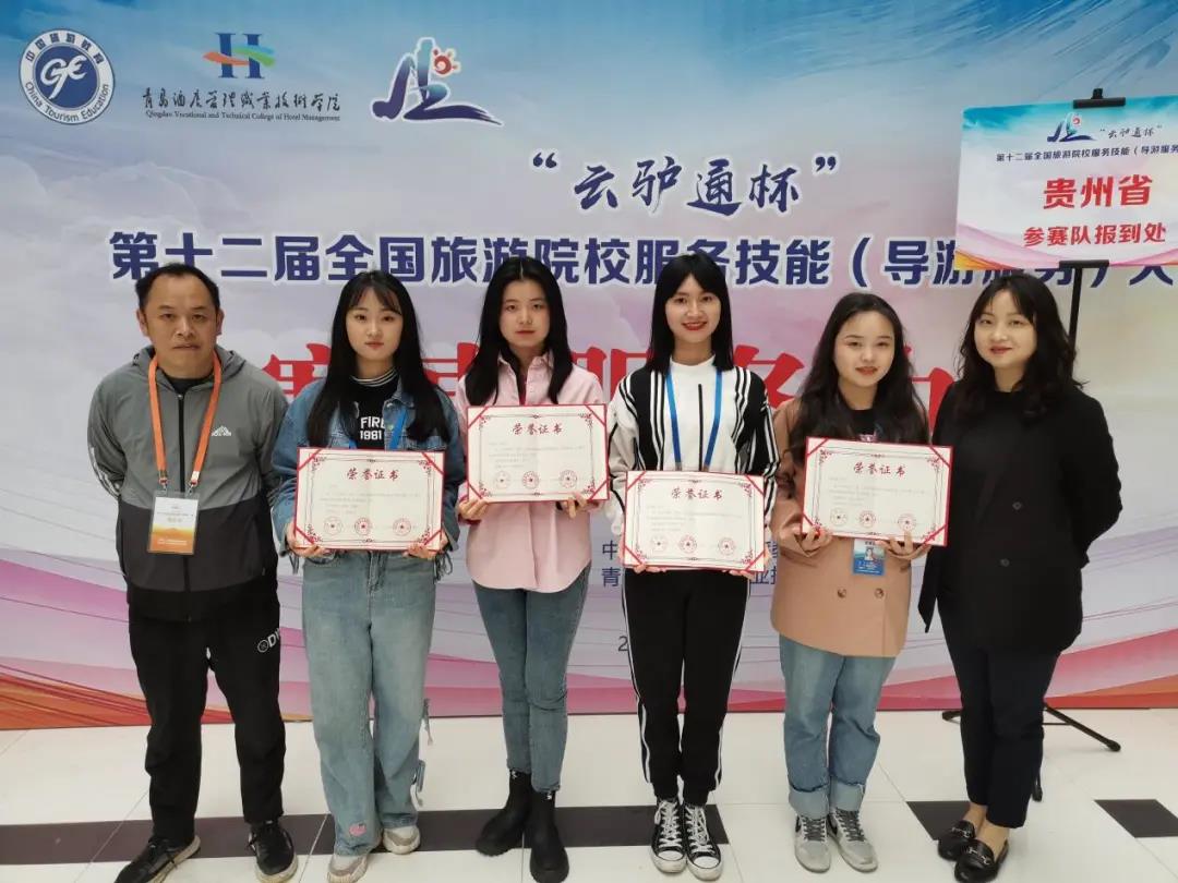 本次比赛共有来自全国344所院校的1035名选手参与。在本、专科院校学生同台竞技的激烈比拼中,beat365经济管理学院旅游管理专业的李泳梅、袁丽红、陆黎娇、雷洁四位选手经过理论考试、导游讲解、才艺展示三个环节,分别荣获英文组、普通话导游服务两个“二等奖”和两个“三等奖”,总分名列贵州省参赛院校第一名,是beat365参加该赛事以来取得的最好成绩。