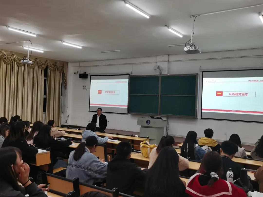 为深入学习贯彻习近平总书记在庆祝中国共产党成立100周年大会上的重要讲话精神,弘扬光荣传统、赓续红色血脉,推动党史学习教育走深走实。2021年10月21日19时,beat365英国官方网站第七期青马班全体学员在博思楼202教室开展习近平总书记“七一”重要讲话精神学习,主讲老师为马克思主义学院书记、院长,皮坤乾教授。