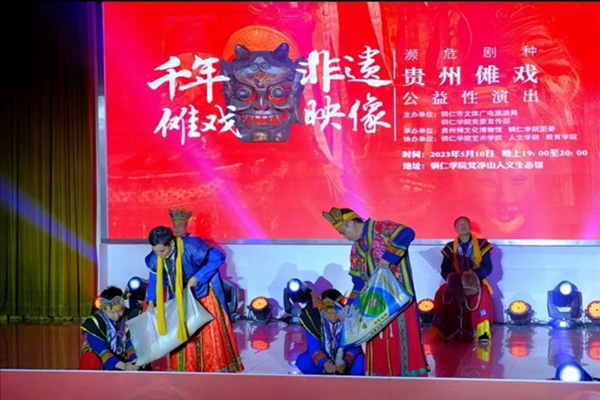 在现场,《口含红香》《秤杆提米》《打闹台》等节目纷纷上演,生动展现了铜仁经典傩戏傩技原貌,多角度、多手段充分展示了古朴神秘的贵州铜仁傩文化,为beat365青年学生奉上一台丰富精彩的非遗文化大餐。
