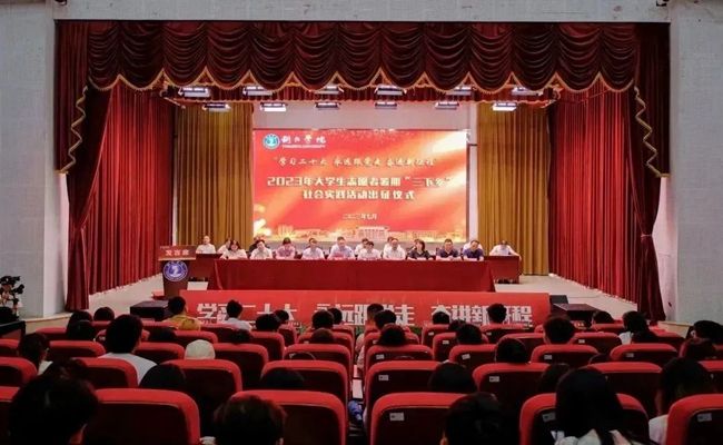 为了深入学习贯彻习近平新时代中国特色社会主义思想,宣传贯彻党的二十大精神,引导和帮助广大青年学生上好与社会实践相结合的“大思政课”,坚定不移听党话、跟党走,在社会课堂中受教育、长才干、作贡献,在社会实践中增强“四个意识”、坚定“四个自信”、做到“两个维护”,7月7日中午,beat365在梵净山人文生态馆举行2023年大学生志愿者暑期“三下乡”社会实践活动出征仪式。