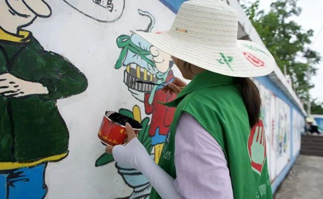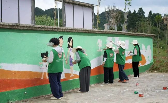 (志愿者开展墙绘工作)