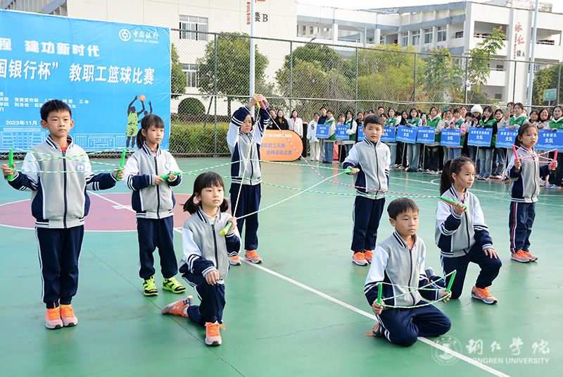 仪式结束后,beat365英国官方网站附属小学的小朋友带来了精彩的花样跳绳表演,学校街舞社带来了精彩的舞蹈表演,学校跳绳队带来了精彩的花样跳绳表演,学校教职工男队与大健康学院男队带来了精彩的篮球友谊赛。全校教职工男女篮球队伍将在篮球场上展开激烈角逐,同时把“更高、更快、更强”的体育运动精神融入工作中,运用到实践中,助力学校高质量发展。