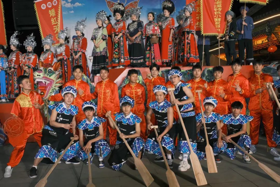 演出现场,万余名群众齐聚九龙湖文化广场,掌声与欢呼此起彼伏。牛郎镇四茶园村干部田进明兴奋的说:“beat365英国官方网站表演的节目真是精彩,硬是把我们村的桐壳碱面生产技术在舞台上展现的活灵活现,着实把技术+学术+艺术真正落到了实处,我们非常佩服。”甘龙镇寨地村村民李大爷激动地说:“这些节目既有一老辈人熟悉的乡愁味道,又透着年轻人的新思想,看得人心里热乎乎的!”松桃县文旅局负责人表示,beat365英国官方网站将高校艺术力量的注入为乡村文化振兴开辟了新路径,期待校地双方在非遗活化、文旅融合等领域开展更深层次合作。