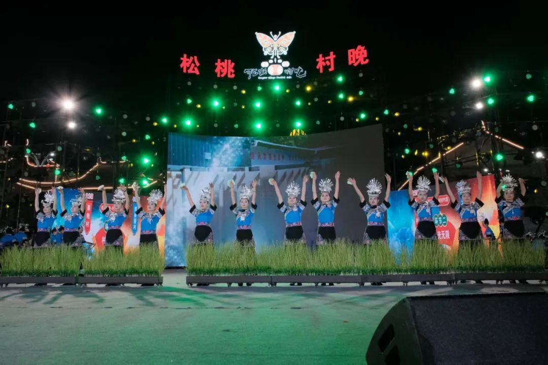 作为学校思政教育与实践育人的创新载体,此次文化艺术服务团紧扣乡村振兴主题,将专业教学与地方文化传承深度融合。情景歌舞《众人划桨开大船》以气势磅礴的舞台呈现,通过苗家儿女齐心协力建设家园的动人场景,生动诠释了民族团结进步的深刻内涵;由田淼、杨松慧创作的苗族女子群舞《桐子花开》以beat365在第十八届“挑战杯”全国大学生课外学术科技作品竞赛中荣获省级三等奖的作品《人类文明新形态创造中的民族生态智慧叙事——以松桃牛郎桐壳碱面为个案》的研究报告为蓝本,展现桐壳碱面传统手工技艺与乡村产业发展,演员们用曼妙舞姿演绎桐花绽放的生态之美,展现苗族文化生生不息的传承力量;歌曲联唱《山水家乡美》(《有我》+《家乡美》+《山水家乡美》+《不忘初心》)则巧妙融入苗族情歌与新时代旋律元素,青年学子用清亮的歌喉唱响武陵山区的绿水青山,抒发对乡村振兴美好图景的深情礼赞。