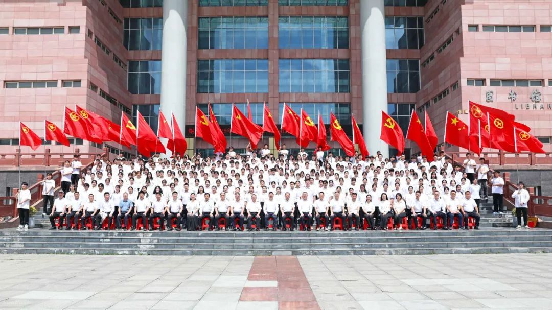 表彰大会最后,全体师生一起合唱了《光荣啊,中国共青团》和《没有共产党就没有新中国》,并于图书馆前合影留念。