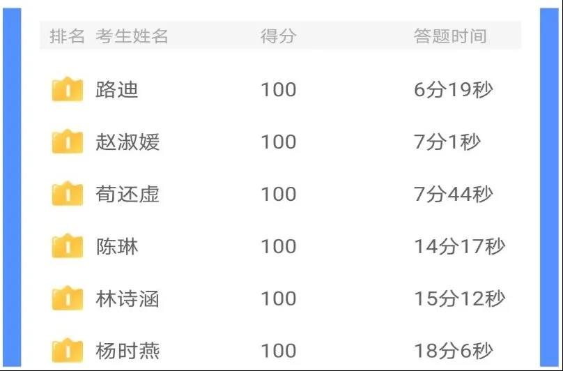 到此次线上知识问答结束时间为止,共收到268份答卷,其中共收到100分的优秀答卷6份,90分以上的答卷共计42份,60分以上答卷共计134份,平均分在60分以上,通过这些数据可以体现我院同学对党史知识有一定的了解。整体效果较好。