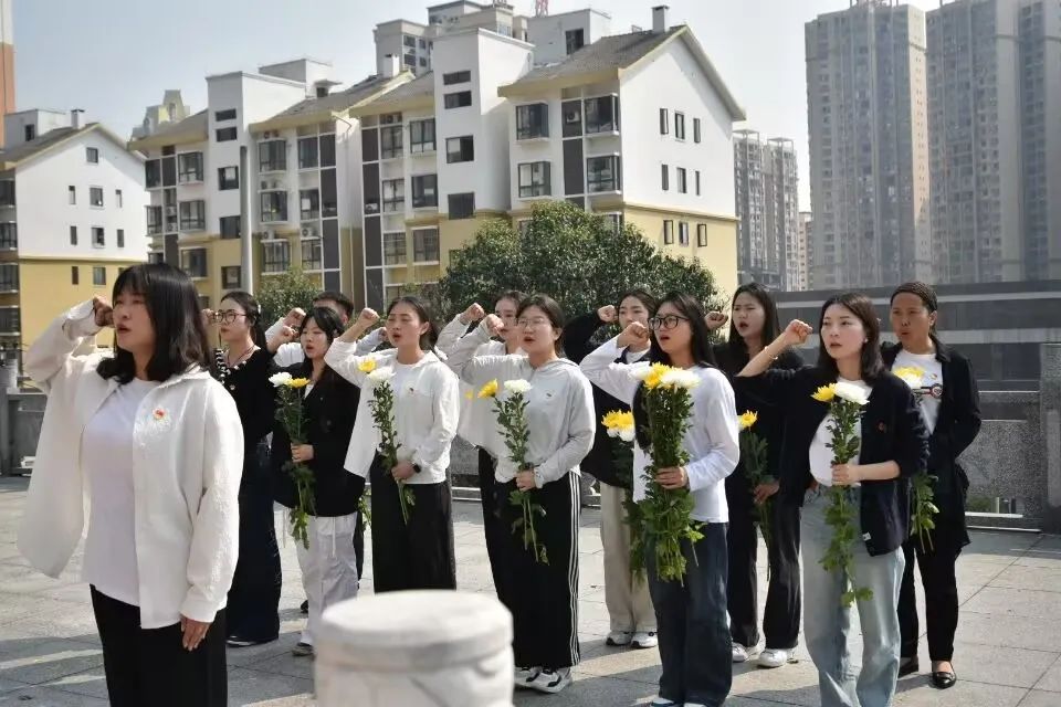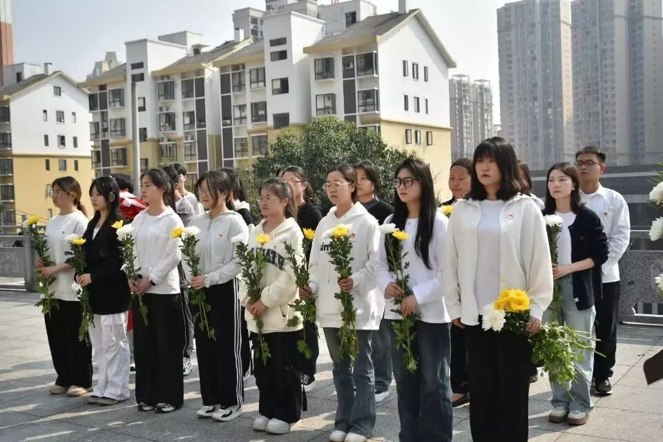 上午9点,全体师生在学校门口集合,统一前往文笔峰烈士陵园。在马克思主义学院组织部成员夏金凤的主持下,师生们向革命烈士敬献花篮,整理缎带,并静立默哀三分钟,深切悼念为民族和人民解放事业献出生命的英烈。