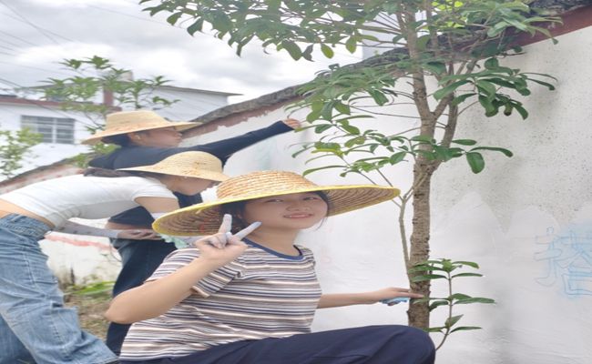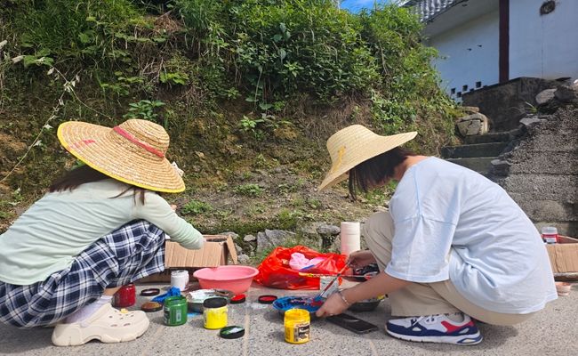 创作过程中,夏日的骄阳似火,气温不断攀升,但实践队队员们丝毫没有被烈日酷暑所吓倒。他们手持画笔,以墙为纸,全身心投入到创作之中。从最初在墙面上小心翼翼地勾勒线条,到细致入微地填色渲染,每一个步骤都凝聚着队员们的专注与用心。他们相互协作,遇到难题共同商讨解决方案,秉持着精益求精的态度,力求将每一处细节都做到尽善尽美。一笔一划间,不仅是艺术创作的过程,更是文化传承的实践。当地村民们被实践队的创作热情所吸引,纷纷怀着好奇与热情前来围观。