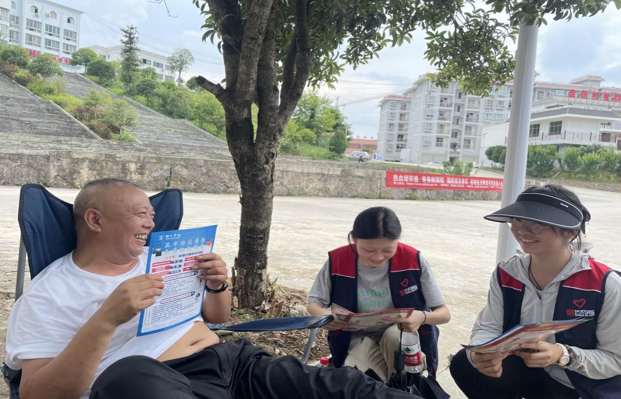 为响应国家深入推进乡村振兴的号召,切实提升乡村群众的反诈防骗意识、防水、防火安全意识,守护群众生命财产安全,艺术学院“三防助振兴”实践团走进松桃苗族自治县盘信镇,以文化赋能乡村振兴,将宣传与艺术深度融合,充分发挥专业优势,并通过发放宣传单、实地讲解等方式,用青春力量为乡村安全保驾护航。