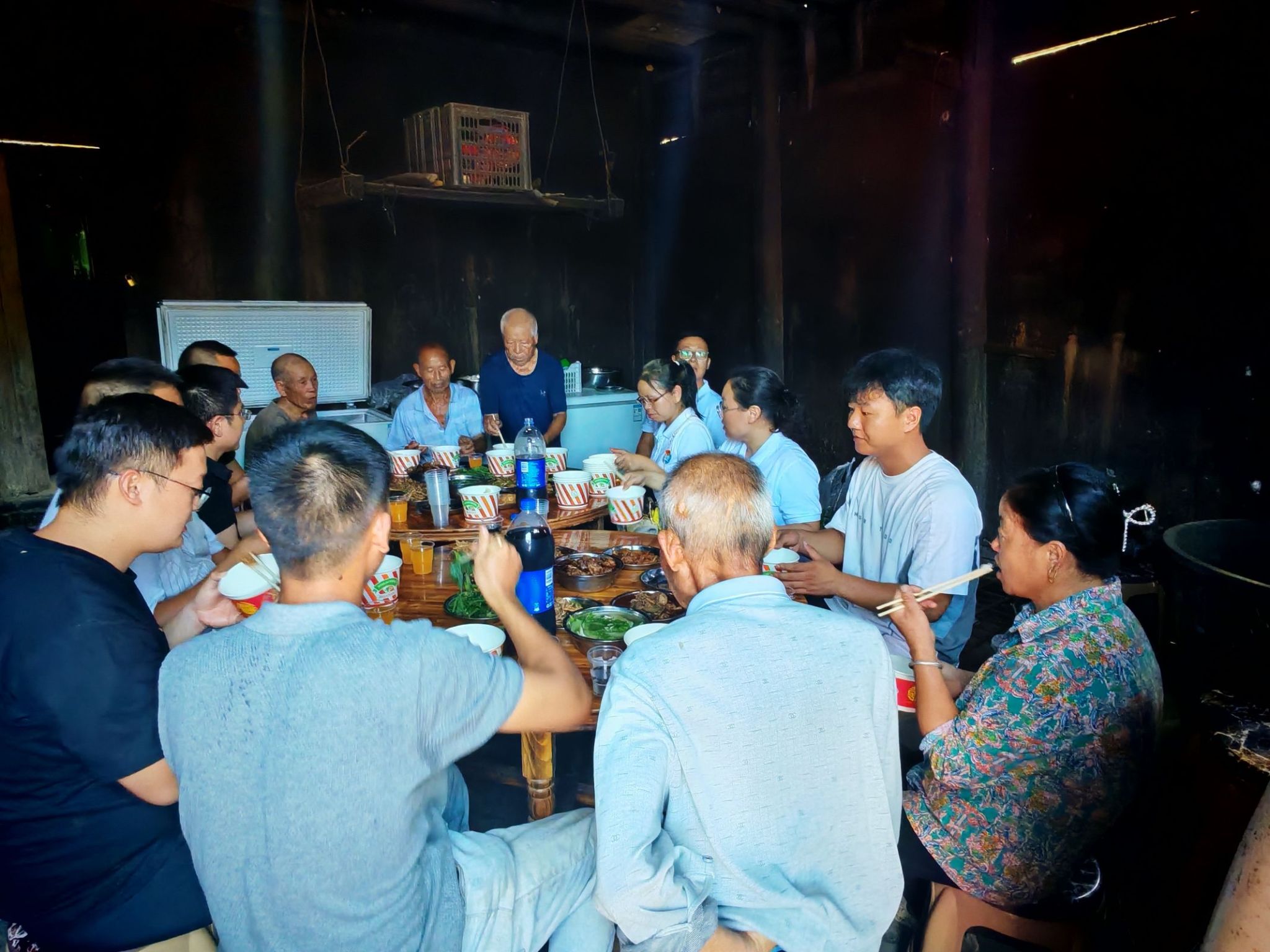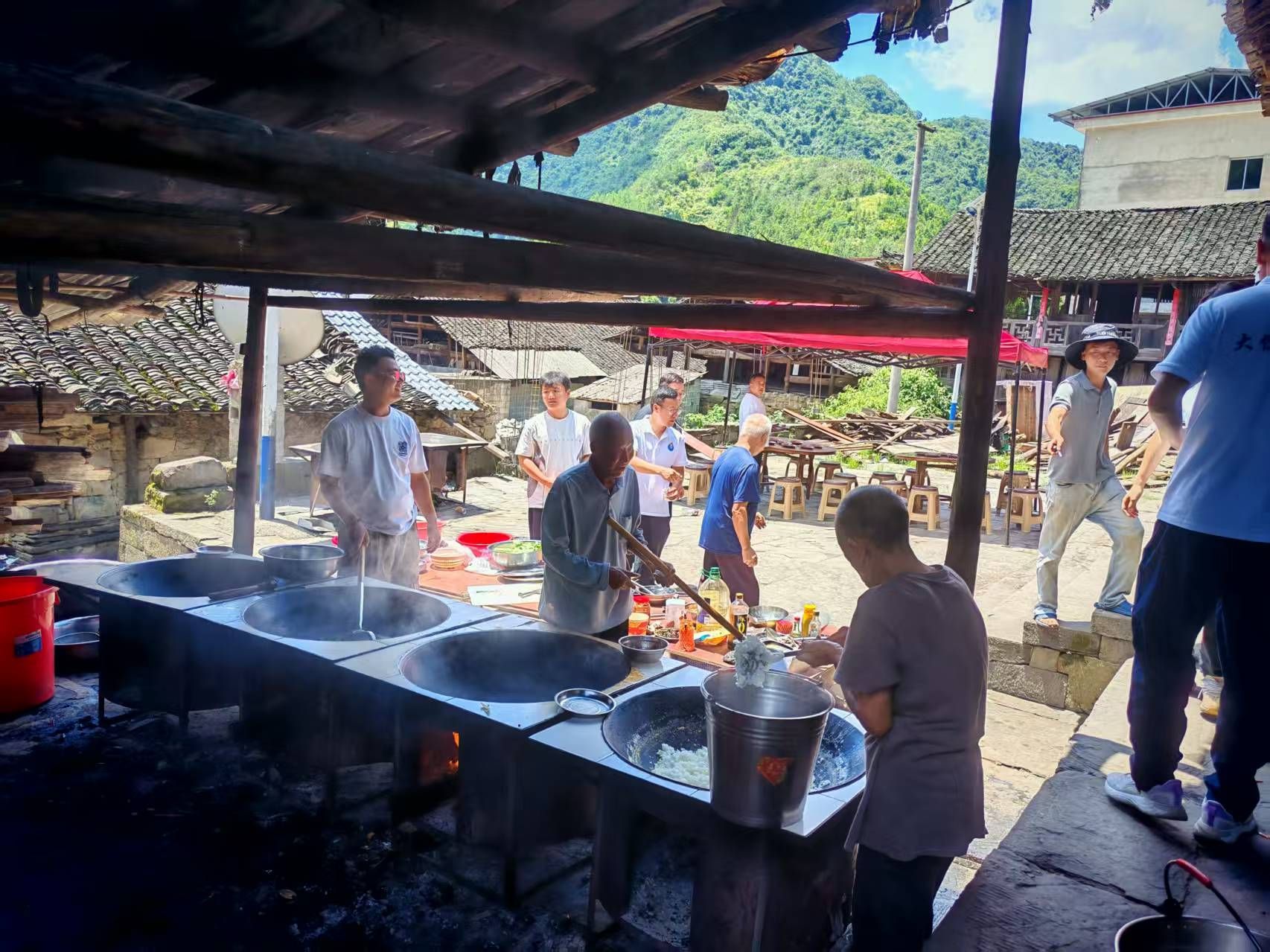 (四茶园村村民自发帮助置办午餐)