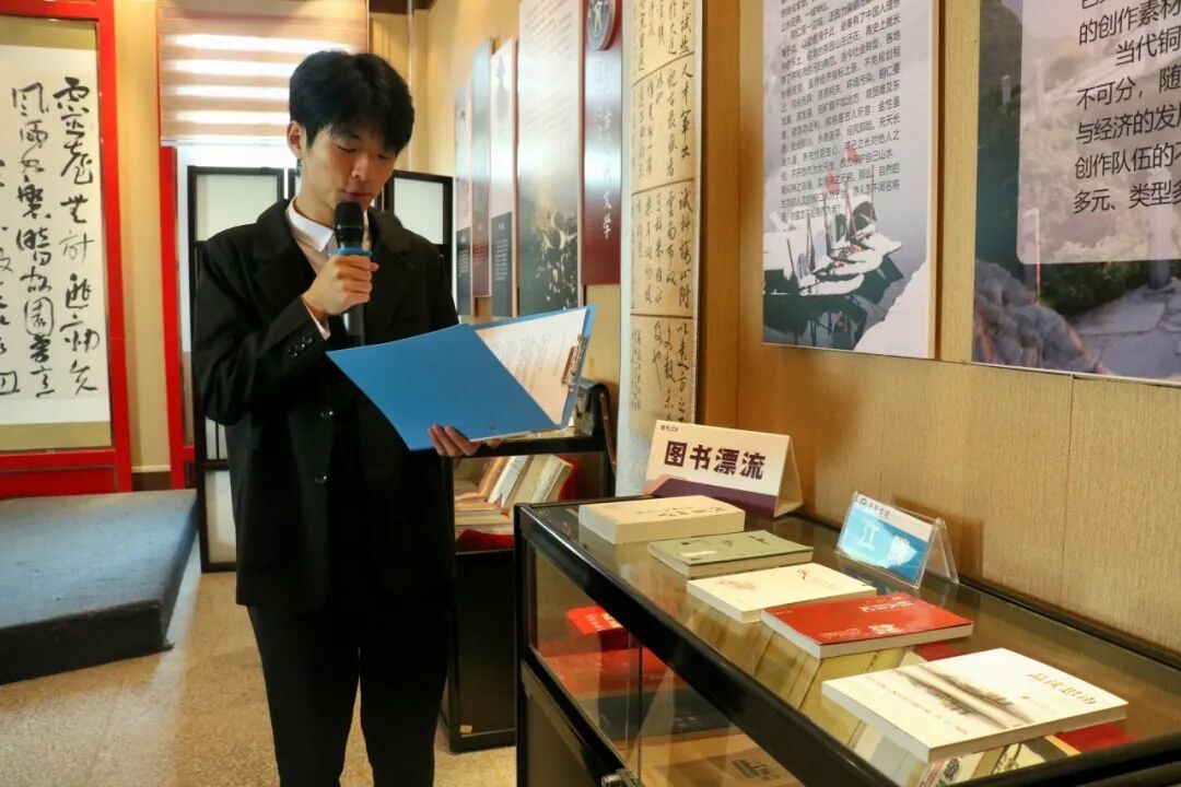 随后的观众阅读分享环节,同学们纷纷走上讲台分享好书及心得。国际学院张睿杰同学重读《毛泽东选集》,从《实践论》的 “知行合一” 谈到《论持久战》的战略智慧,称其为 “照亮前行道路的思想灯塔”;另有同学谈到,读完《被讨厌的勇气》后,被阿德勒心理学触动,有了直面生活、追求自由的勇气。图书漂流活动中,同学们携带20余本藏书现场交换,《百年孤独》《活着》《平凡的世界》等书页间的批注成为读者思想碰撞的纽带,实现知识与感悟的共享。