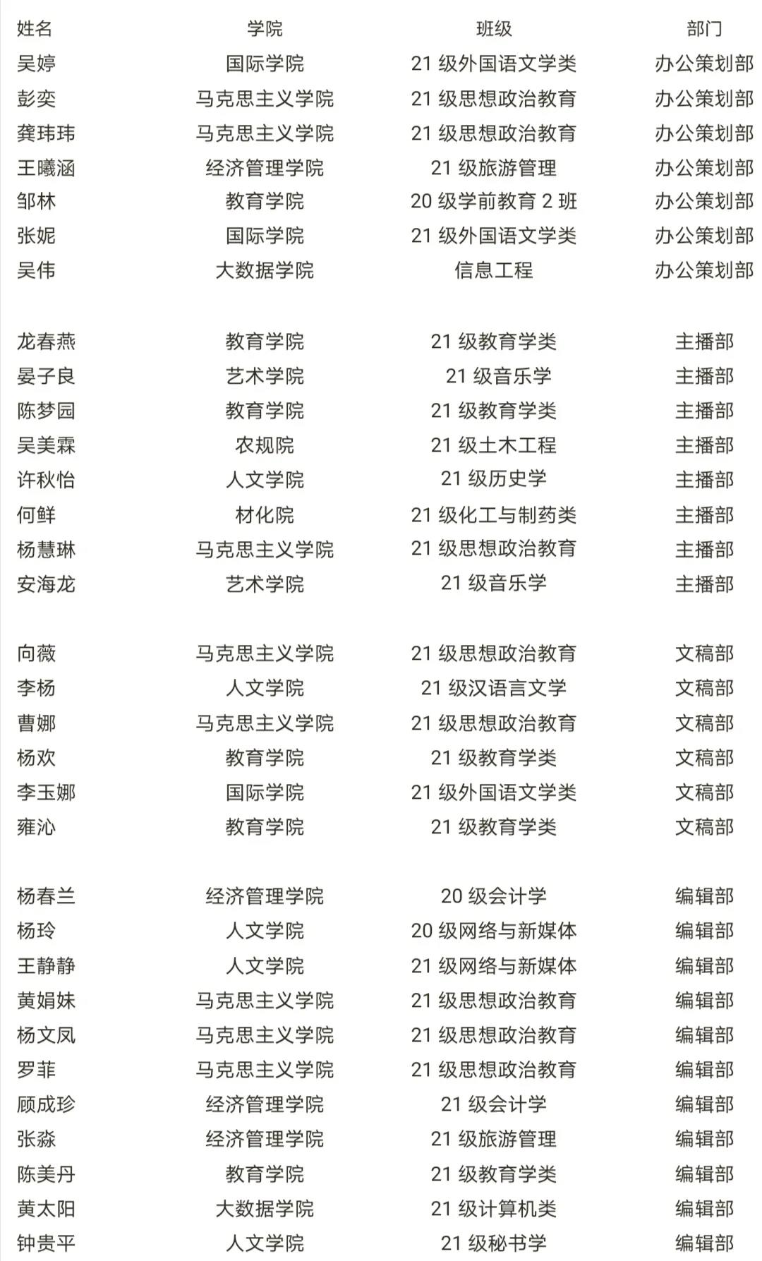 青媒工作室纳新成员名单如下: