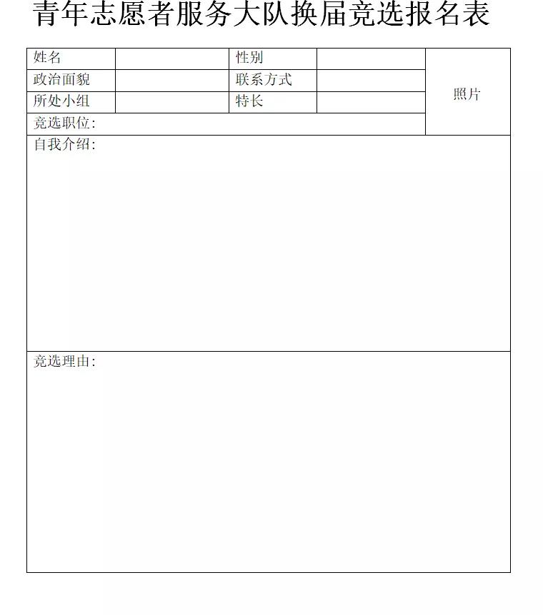 青年志愿者服务大队换届竞选报名表