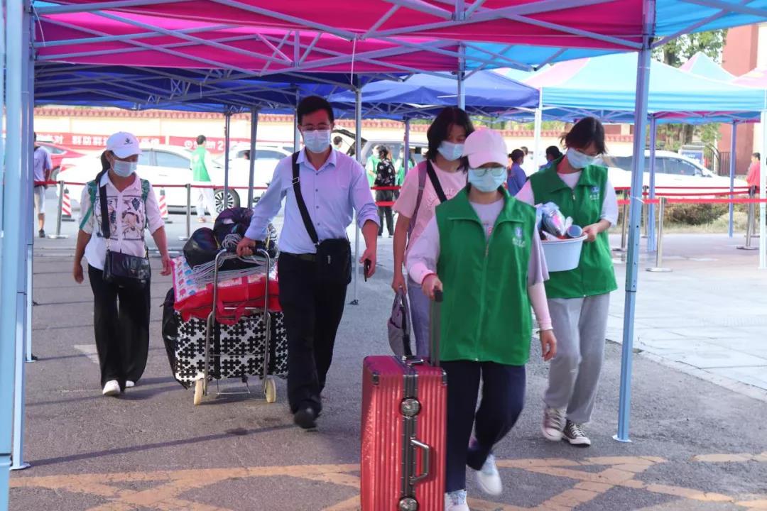 新同学刚下车志愿者便热情迎了上去,行李搬运、体温测量、行程登记、查看核酸报告等,志愿者们用贴心服务为新生们的大学生活写下充满温暖的一笔。