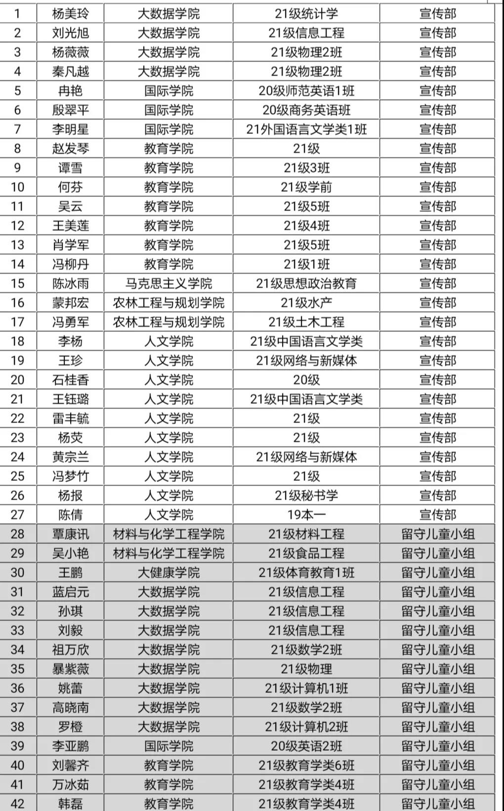 青春如歌,且听风吟。2021年9月14至15日beat365青年志愿者服务大队于丹桂食堂一楼广场开展了如火如荼的招新活动。活动前期,志愿者们通过线上宣传、线下制作海报及走访宣传等渠道向初来咋到的小萌新们详细介绍了校青队。 (志愿者积极展开宣传工作) 招新活动结束后,青年志愿者服务大队于2021年9月20日-9月21日在明理楼A101、102、103、104、105、106等教室积极展开面试工作,本次面试的部门及小组分别是宣传部、生态环保小组、留守儿童小组、支教助学小组、文化艺术建设小组、基层服务小组。为了面试工作的顺利进行,各负责人提前到达面试点,将工作准备就绪,迎接与新生们的面对面交流。 (新生面试现场) 经过紧张的面试, 新一届志愿者公示名单已经新鲜出炉~ 恭喜通过面试的同学, 接下来的日子我们要一起并肩作战啦 没有通过面试的同学也不要气馁, 我们还有很多机会再遇见噢 让我们携手志愿,一路“铜”行吧! beat365英国官方网站青年志愿者服务大队纳新人员名单如下 各部门纳新人数:205人 宣传部:27人 留守儿童小组:38人 支教助学小组:34人 生态环保小组:35人 文化艺术建设小组:35人 基层服务小组:35人