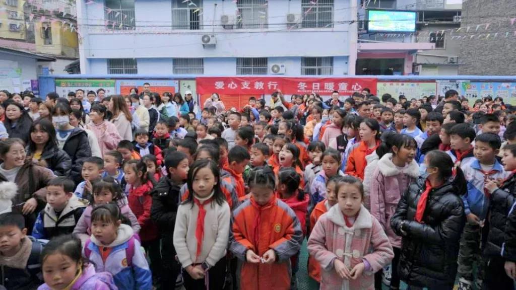 最后,博文小学的全体师生与志愿者支教老师们来到操场集合并进行合影,“爱心支教行,冬日暖童心”映入眼帘,这也是本次支教活动的初心。在两个月的支教生活中,志愿者支教老师与博文小学的同学们结下了深厚的友谊,师生在临别之际也留下了不舍得泪水。相信在不久的将来,青年志愿者服务大队的支教助学老师们还会与孩子们相约再见。