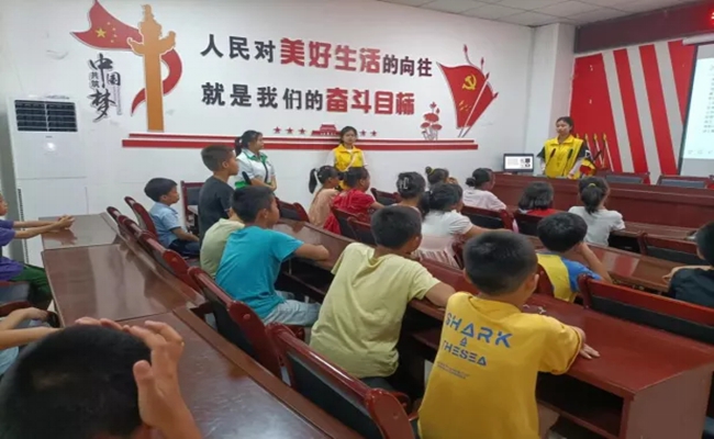 每到周末,他们志愿者小队,还会进行一些有趣的宣讲活动,安全标语文明宣传,陈石强同学这些志愿者悬挂条幅,以宣传标语的方式提醒广大村民守建党初心,注意防疫、防水、防火、环保,在一定程度上提升村民安全意识、环保意识,营造了良好的文化氛围,助力美丽乡村建设。同时,他也深切告知村民儿童,告诉他们夏季是溺水高发期,让他们特别注意防范和自身安全。