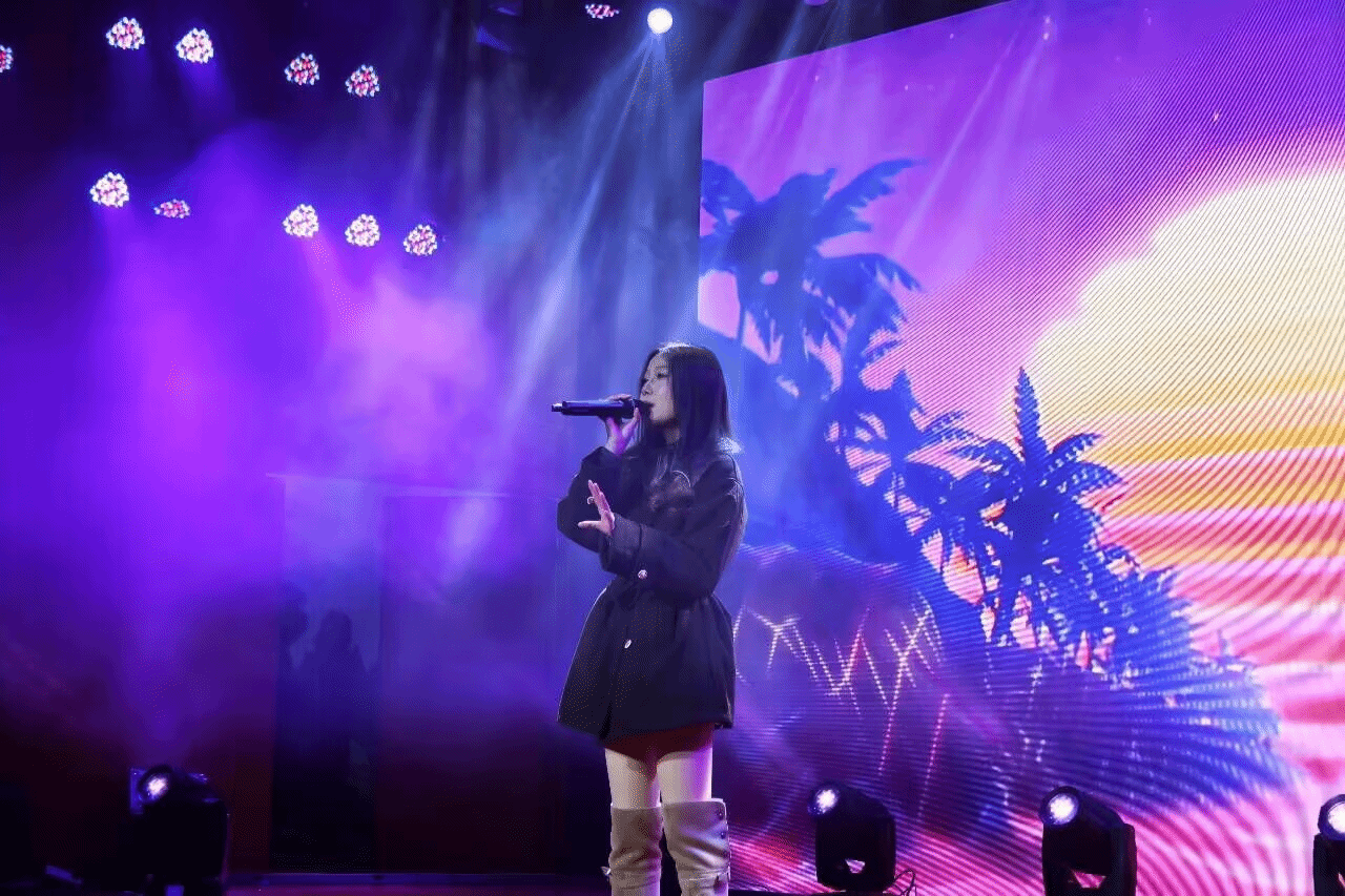 从海选的140人,到复赛的45人,经过的紧张角逐,专业组与非专业组共 20 名同学脱颖而出,成功晋级决赛。决赛现场,灯光璀璨,观众热情高涨。决赛在街舞协会与AT街舞工作室带来的《街舞风暴》中拉开帷幕,迅速点燃全场。赛场之上,各位参赛选手意气风发、信心满怀。灯光流转间交织着婉转旋律,选手们沉浸式投入表演,歌声时而深情婉转、绵长悠扬,时而激昂高亢、嘹亮入耳,用灵动音符勾勒青春模样,以赤诚之声传递追梦力量。《你不知道的事》《晚安》《空心》《格桑梅朵》《不同凡想》等一首首歌曲接连上演,每一首歌都带动着观众的心,此起彼伏的掌声与欢呼声和歌声融为一体,将活动现场的氛围一次又一次的推向高潮。