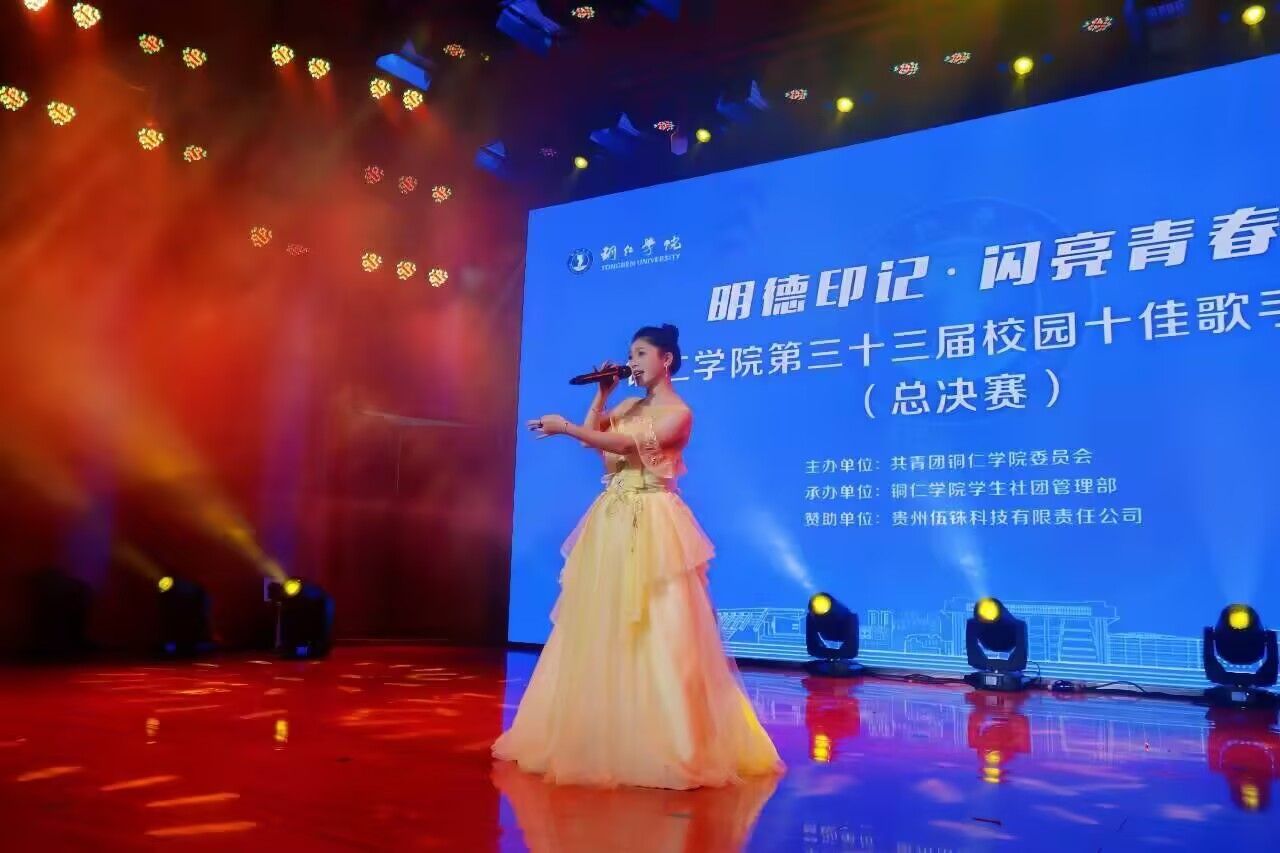 为丰富校园文化生活,营造健康向上的校园文化氛围,切实增强铜院育人成果,12月4日,由共青团beat365英国官方网站委员会主办,beat365英国官方网站学生社团管理部承办,贵州伍铢科技有限责任公司赞助的“明德印记•闪亮青春”第三十三届十佳歌手大赛决赛在学校音乐楼举行。本次活动由孔爽、朱恩祺、粘芳雪、赖雷闽主持。