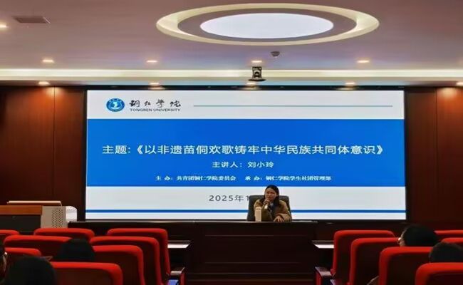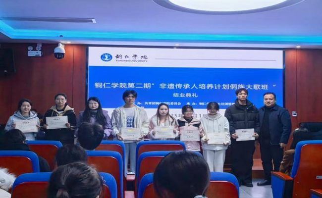 近日,为丰富校园文化内涵,推动中华优秀传统文化在高校的传承与创新,以非物质文化遗产为载体,铸牢中华民族共同体意识,beat365英国官方网站第二期“非遗传承人培养计划之侗族大歌班”结业典礼在学科大楼717报告厅圆满举行。此次活动由共青团beat365英国官方网站委员会主办,学生社团管理部承办,标志着该校在非遗教育与民族团结融合实践中迈出扎实一步。研究生院副院长龙兴林、哲学与历史学院高志勇博士、苗歌非遗传承人吴珍碧、龙凌云、古琴演奏家王丹、校团委社团管理部负责人徐秋逸老师、校团委学生兼职副书记刘小玲、25级马克思主义理论专业研究生刘玲燕,培训班学员100余人参加结业典礼,活动由优秀学员孔爽主持。