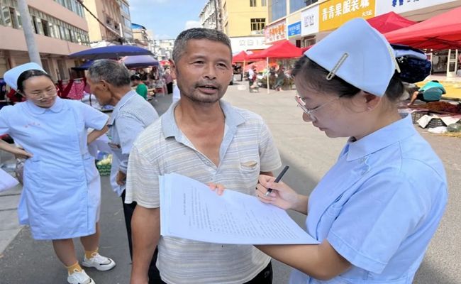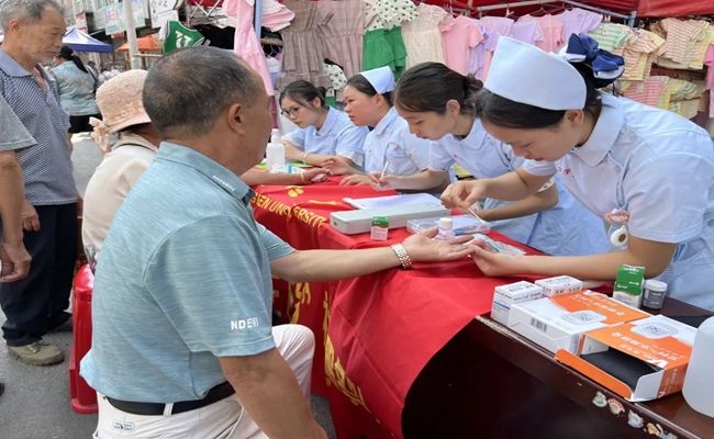 在活动现场,健康关怀团队的成员们积极向居民们发放宣传资料,并耐心地回答大家的问题。他们用通俗易懂的语言向大家讲解了毒品的危害,以及艾滋病的传播途径和预防措施。此外,他们还详细介绍了如何通过健康的饮食和运动来预防糖尿病和其他慢性疾病。为了更直接地帮助居民们了解自己的健康状况,健康关怀团队还在现场设立了血压血糖检测点,护理系的同学们利用在学校学习的专业知识,为当地居民进行血压血糖检测,并为每一位前来检测的居民提供了详细的健康咨询和建议。