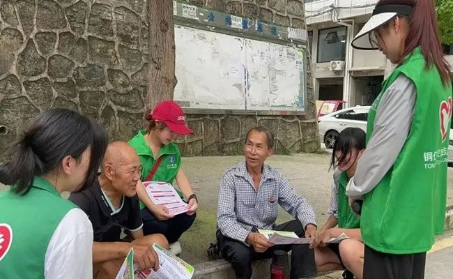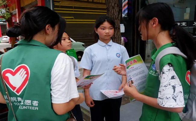 7月10日,下午阳光如沐,禁毒防艾宣讲活动正式拉开帷幕。宣讲小队身穿统一的绿色志愿服,手持宣传资料,在街头巷尾进行随机走访,向居民传达禁毒防艾知识。