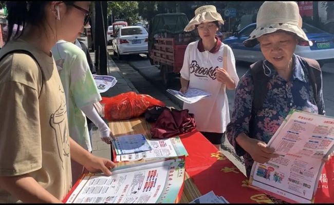 (摆摊设点发放宣传资料)